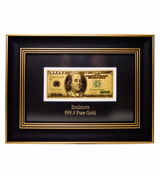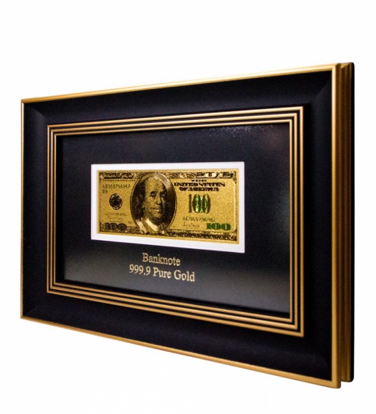 Подарочная позолоченая банкнота 100 USD (доллар) США