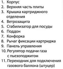 8. Хранение: если плита не используется, то отсоедините газовый баллон или выньте газовый картридж из плиты