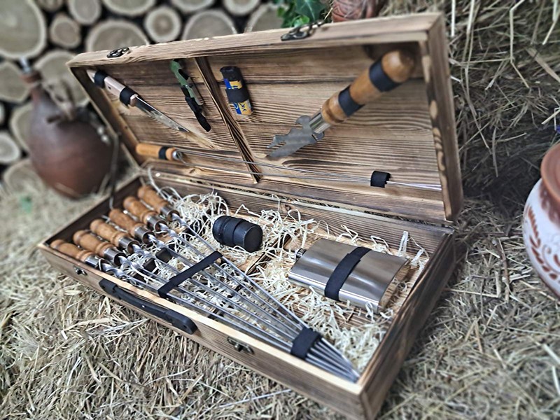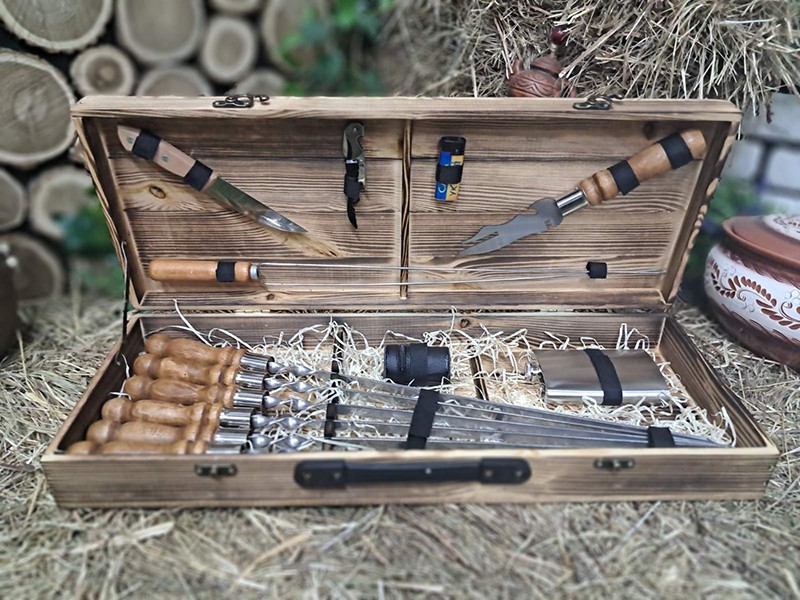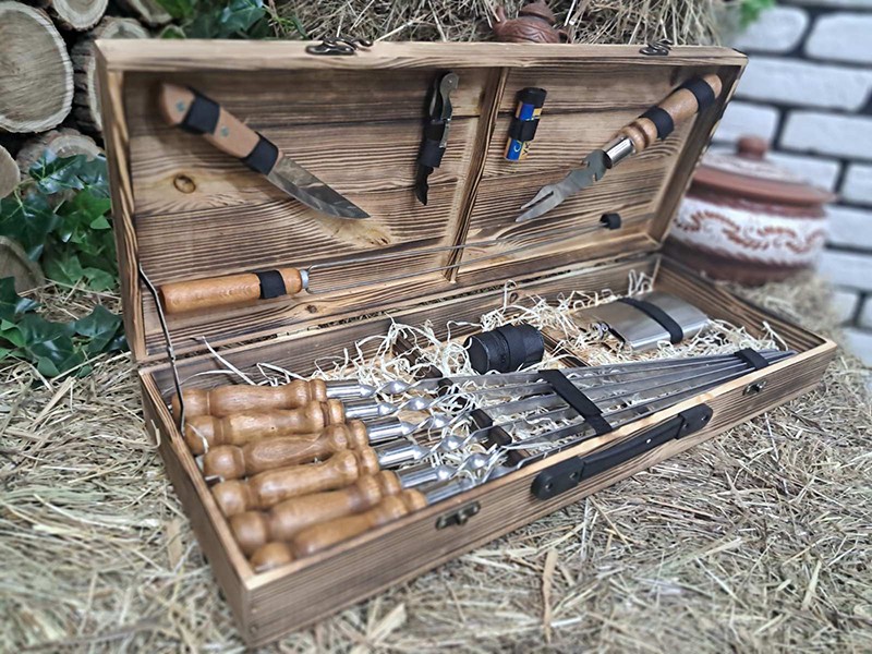 Комментарии к Набор из 6 шампуров для мяса (600х10х3 мм) комплект аксессуаров в деревянном кейсе