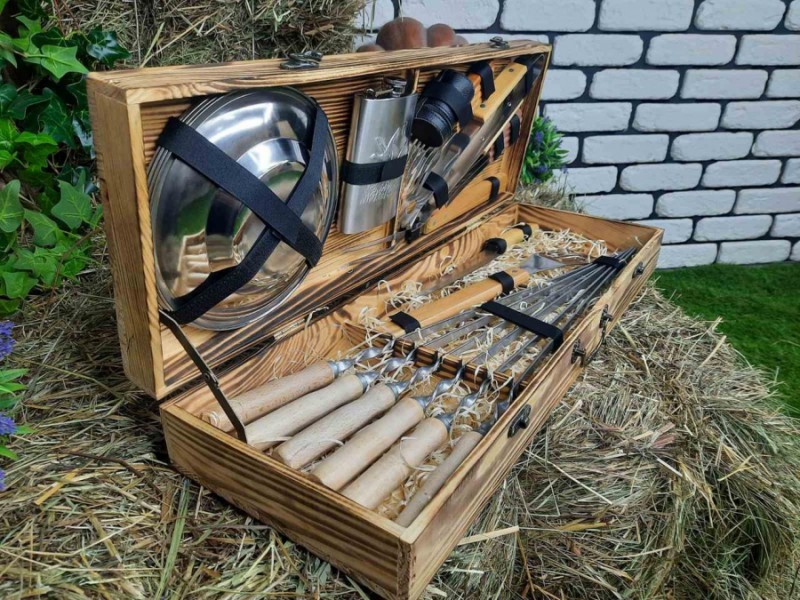 Комментарии к Набор из 6 шампуров для мяса (600х10х3 мм) + комплект аксессуаров в деревянном кейсе