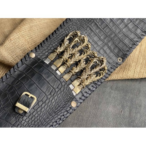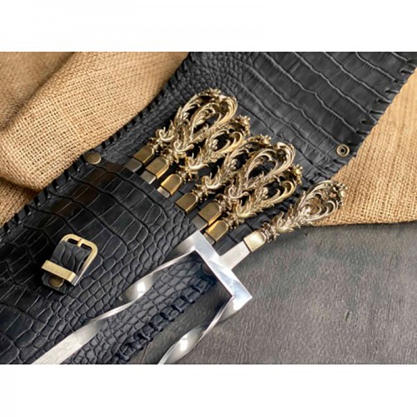 Набор шампуров с бронзовыми литыми ручками. Поставляется в закрытом колчане из натуральной кожи с теснением.