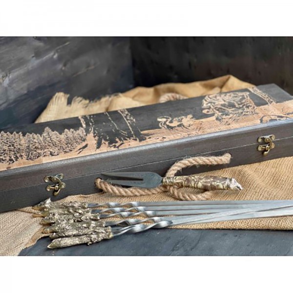 Набор из шампуров Трофей в расписном кейсе из бука с вилкой