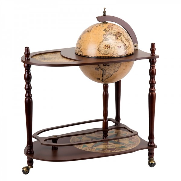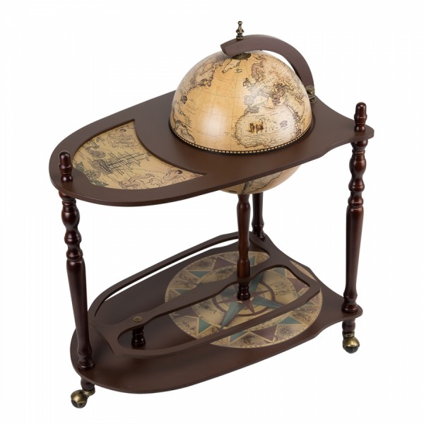 Вашему вниманию предлагается стильный и функциональный мини-бар в виде глобуса. В процессе создания изделия были использованы исключительно высококачественные материалы, среди которых дерево и папье-маше. На столике реализованы платформы для хранения алкогольных напитков и сопутствующих принадлежностей. Комфортное перемещение изделия обеспечивают компактный размер. Представленный мини-бар – это не только крайне удобное в непосредственном использовании изделие, но и яркий декоративный элемент, который станет оригинальным дополнением самого роскошного интерьера.