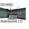 Для максимального комфорта наблюдения окуляр установлен под углом 45º. Труба поворачивается в хомуте на 225º для достижения наиболее удобного угла наблюдений. Выдвижная солнцезащитная бленда защищает объектив как от солнечных бликов, так и от попадания осадков.