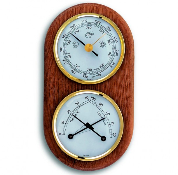 Эта компактная метеостанция изготовлена из массива дуба, состоит из барометра и комбинированного термогигрометра.