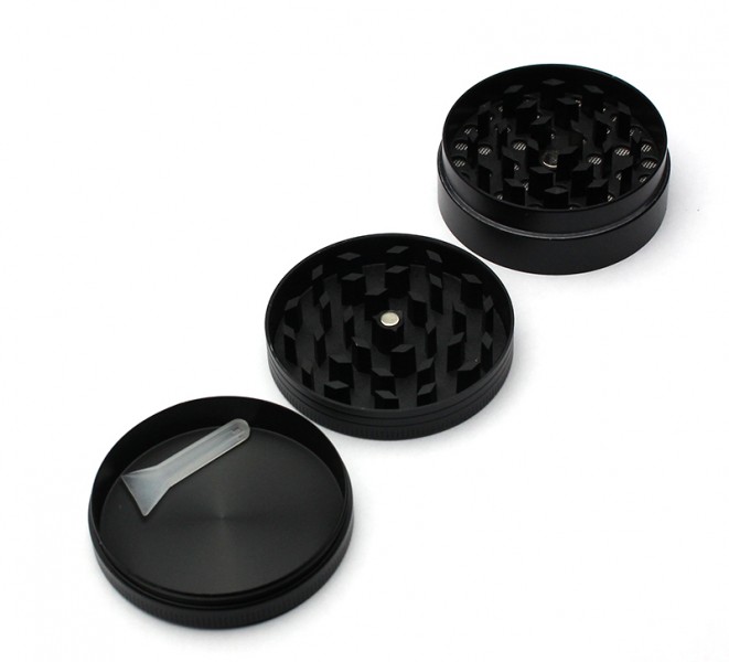 Гриндер состоит из двух секций:- первая закрывается крышкой с магнитом и служит для измельчения табака острыми ножами находящимися внутри, - вторая с ложечкой служит для хранения готового к использованию табака.