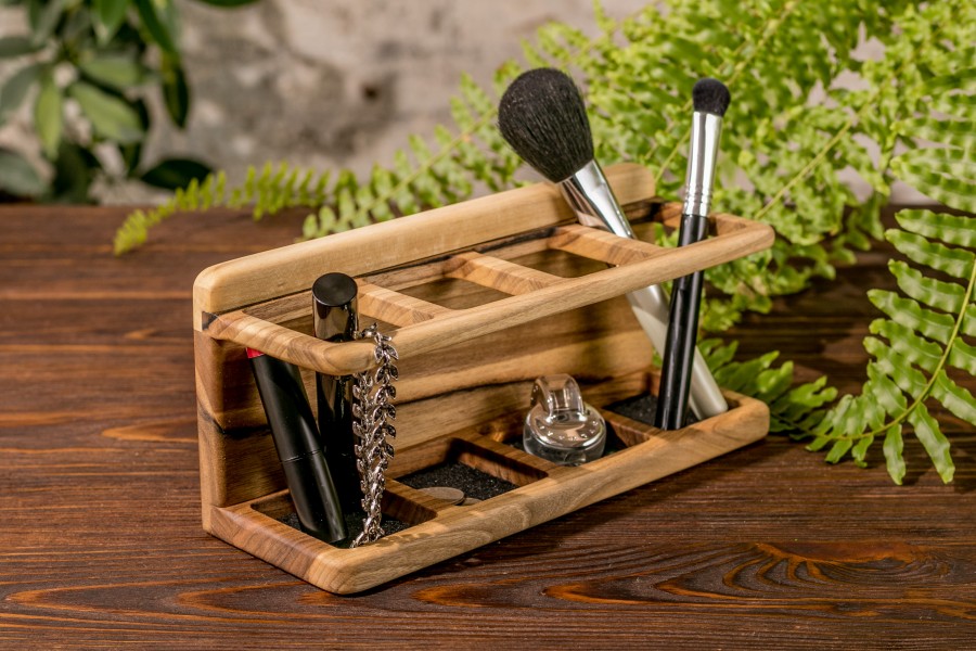 Аксессуар Make Up 4 - органайзер из древесины натурального ореха для Ваших повседневных вещей будет отлично смотреться как на рабочем столе, так и в домашних условиях.