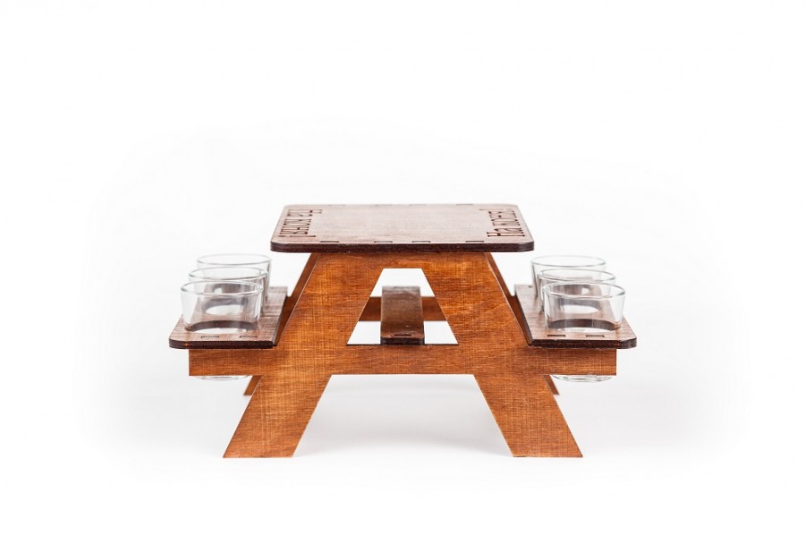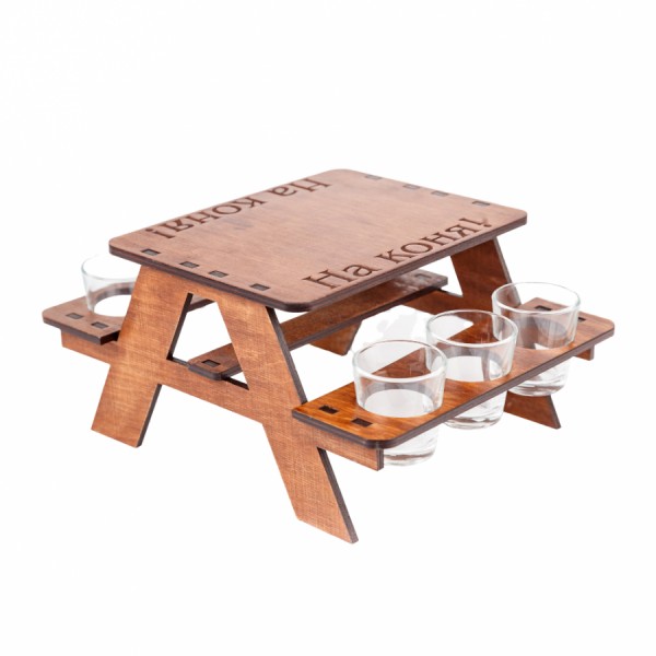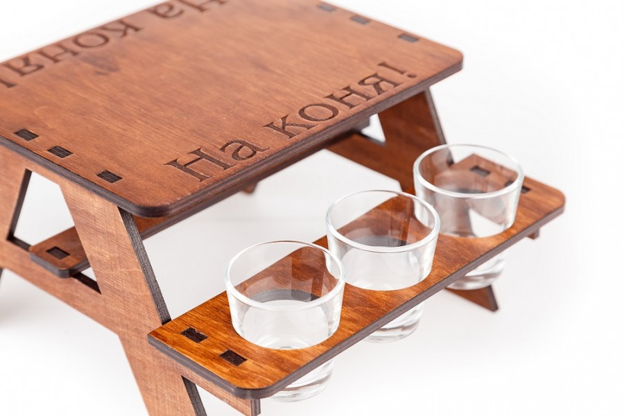 Прекрасная подставка "На коня" для рюмок в виде небольшого столика. Прекрасно подходит для застолья, что функционально облегчает подачу напитков.