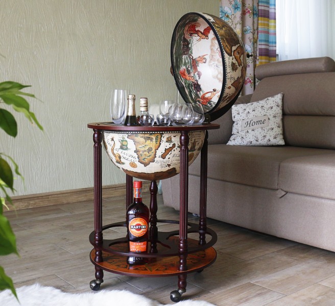 Земной шар еще никогда не был так многофункционален, и это практически не шутка. Вы можете оставить внутри глобуса все необходимые аксессуары для приёма гостей: штопор, запасные пробки и т.д.