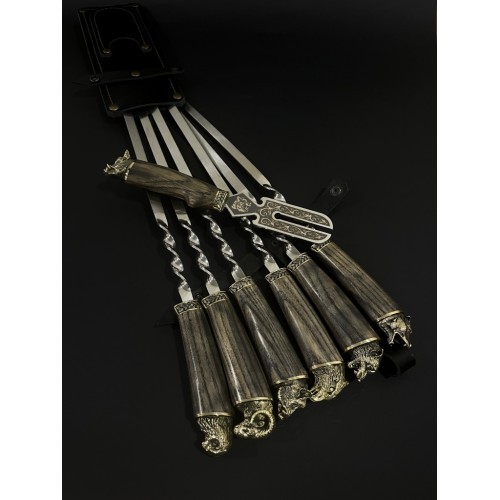 Набор шампуров Дикий ясень в кожаном колчане с вилкой для снятия мяса.