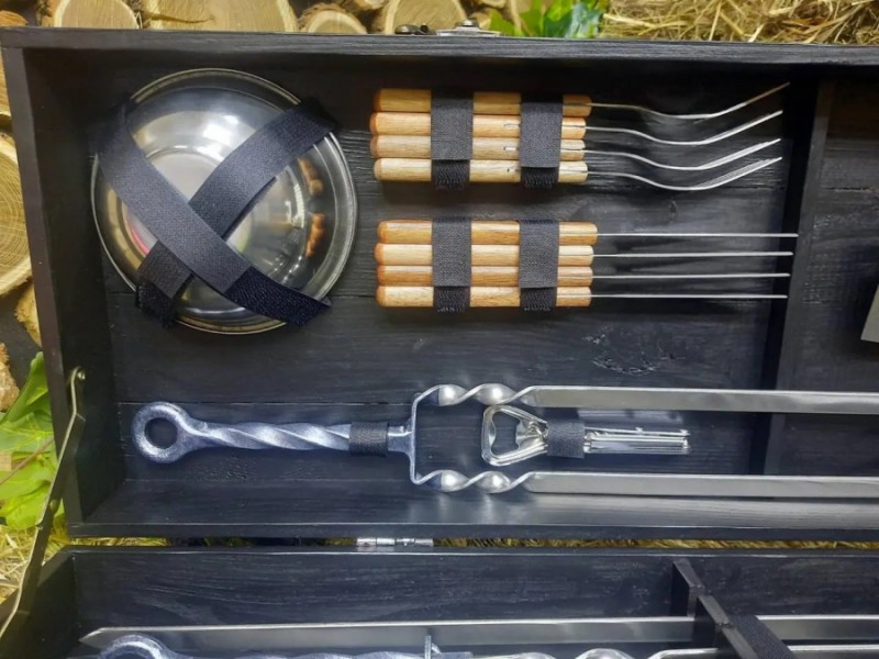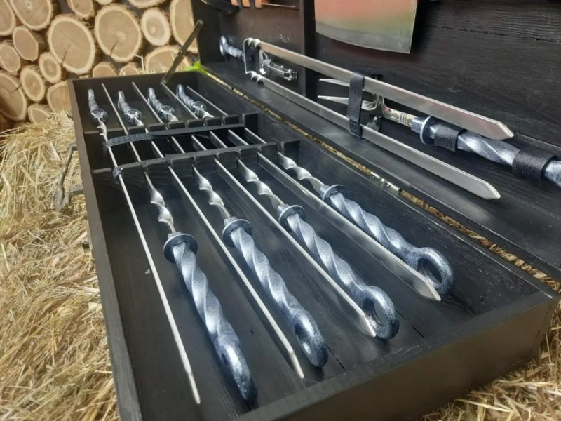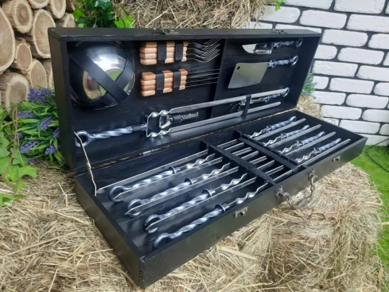 Ящик-кейс для хранения и перевозки шампуров длинной до 75 см из натурального дерева. Кейс тонирован в черный матовый цвет и покрыт масловоском.