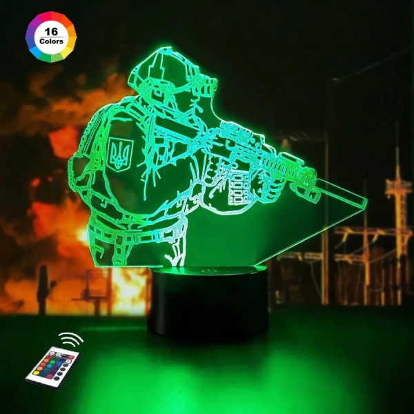 3D ночник Защитник + подарочная упаковка + 16 цветов + пульт ДК + сетевой адаптер + батарейки (3ААА)