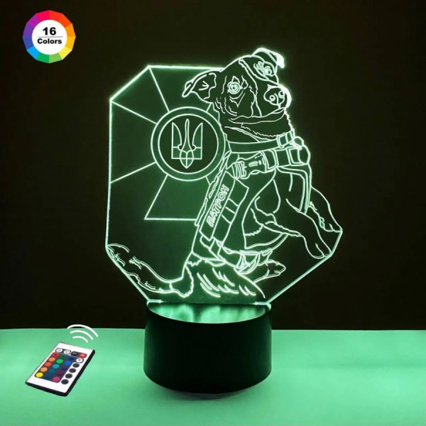 3D ночник Пес патрон подарочная упаковка + 16 цветов + пульт ДК + сетевой адаптер + батарейки (3ААА)