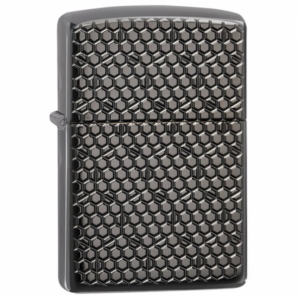 Зажигалка Zippo Armor Black Ice Hexagon Design 49021. Полностью металлическая конструкция, абсолютная ветроустойчивость. На лицевой стороне - рельефный узор соты и шестиугольники.