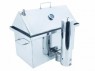 ОСНОВНЫЕ ПРЕИМУЩЕСТВА Укомплектован термометром для полного контроля над процессом копчения. Коптите до 6 кг продуктов за один раз благодаря объему коптильной камеры 35 литров! Высокая крышка домиком увеличивает полезный объем коптильни — Вы можете дополнительно разместить 1-2 курицы на втором ярусе решеток. Материал корпуса — пищевая нержавеющая сталь толщиной 1.5 мм. Надежность гарантирована. Коптильня прослужит Вам более 20 лет. Толщина стенок корпуса дымогенератора составляет 2 мм. В комплекте 5 острых крюков из нержавейки для подвешивания мясных и рыбных балыков на направляющей под крышкой коптильни Коптильня имеет специальный штуцер для подключения и фиксации дымогенератора. Дымогенератор работает на на древесной щепе, которая тлеет в нижней его части. Компрессор с плавной регулировкой подачи воздуха обеспечивает непрерывную работу дымогенератора и возможность регуляции концентрации дыма в коптильне для достижения оптимальных условий при копчении. Среднее время непрерывной работы дымогенератора с одной загрузки составляет порядка 2-3 часов, в зависимости от интенсивности выдува компрессора. Досыпать щепу в дымогенератор можно прямо во время работы. При использовании комплекса в режиме горячего копчения штуцер подключения дымогенератора герметично закрывается заглушкой.