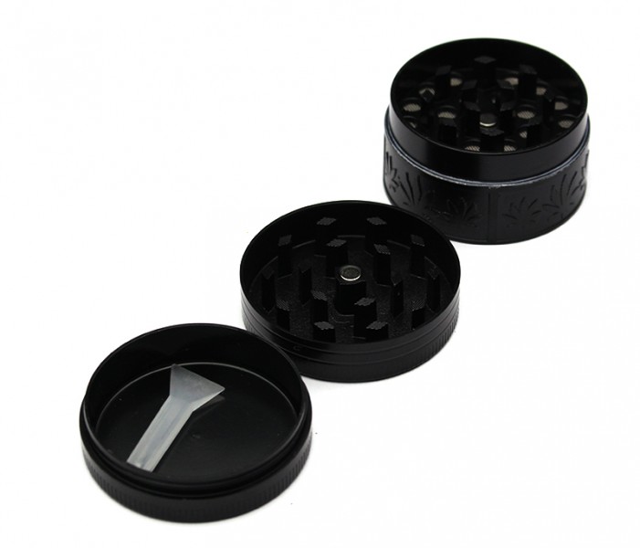 Гриндер состоит из двух секций:- Первая закрывается крышкой с магнитом и служит для измельчения табака острыми ножами находящимися внутри- Вторая с ложечкой служит для хранения готового к использованию табака