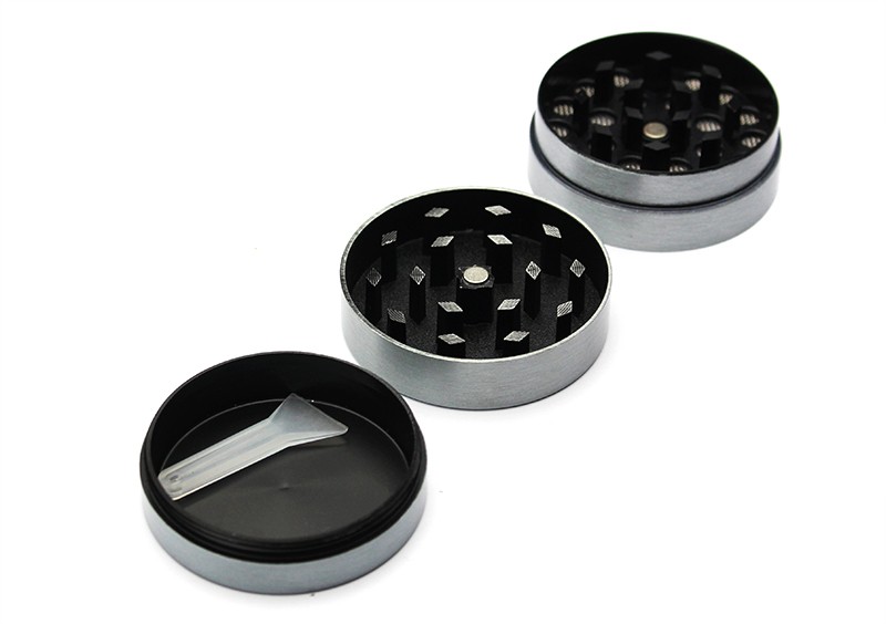 Гриндер состоит из двух секций:- Первая закрывается крышкой с магнитом и служит для измельчения табака острыми ножами находящимися внутри- Вторая с ложечкой служит для хранения готового к использованию табака