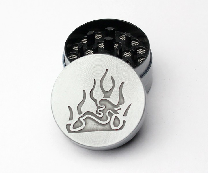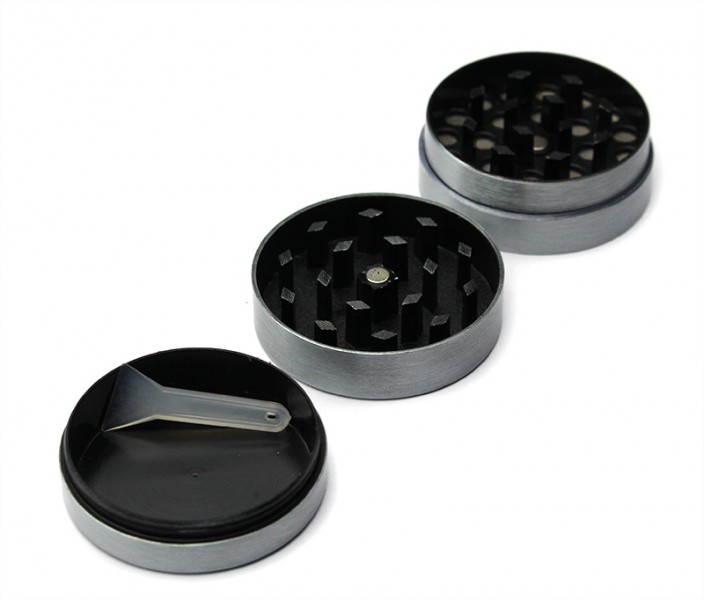 Гриндер состоит из двух секций:- Первая закрывается крышкой с магнитом и служит для измельчения табака острыми ножами находящимися внутри- Вторая с ложечкой служит для хранения готового к использованию табака