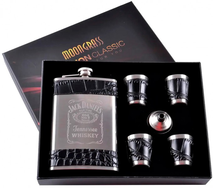 Комментарии к Подарочный набор 6в1 фляга (обтянута кожей), 4 рюмки, лейка "Jack Daniels"
