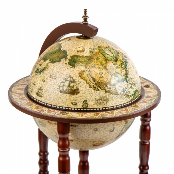 Глобус бар – эстетический и функциональный кейс для алкоголя в форме глобуса. Это компактная и стильная конструкция на колесах, которая вращается вокруг своей оси как настоящий глобус и раскрывается внутри, где есть внутренние полки для хранения алкоголя и барных аксессуаров.