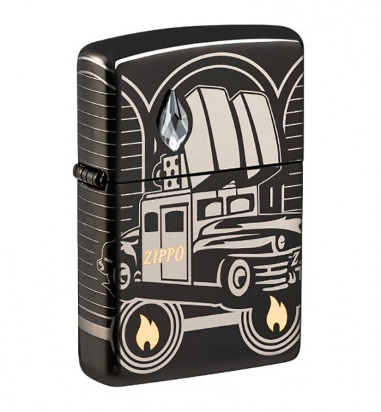 Корпус зажигалки Zippo 48693 2023 COY 75th Anniv Car - Europe имеет черное, глянцевое покрытие. Толщина стенок корпуса в полтора раза толще обычного. 4500 тысяч штук выпущена для Европы, каждая из зажигалок имеет индивидуальный номер, выполнен рисунок культового автомобиля Zippo, с использованием комбинации процесса Photo Image 360˚ и лазерного двухцветного изображения, на лицевой стороне расположился кристалл сваровски.