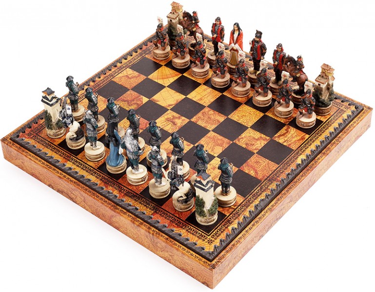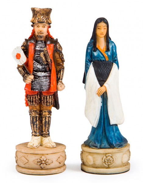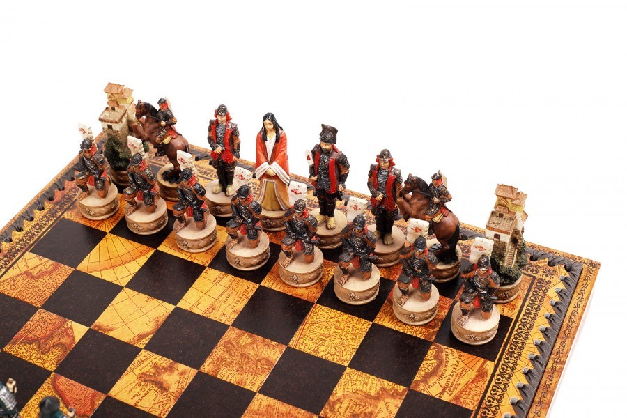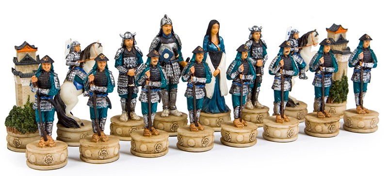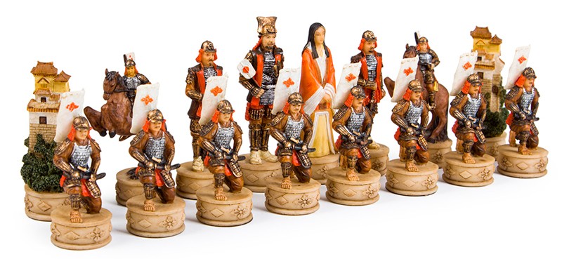 Эти шахматные фигуры средневековые самураи изготовленные вручную из полистоуна расписаны в мельчайших деталях итальянскими мастерами.
