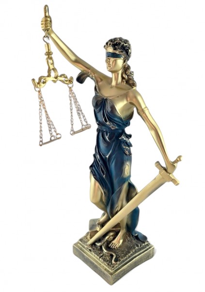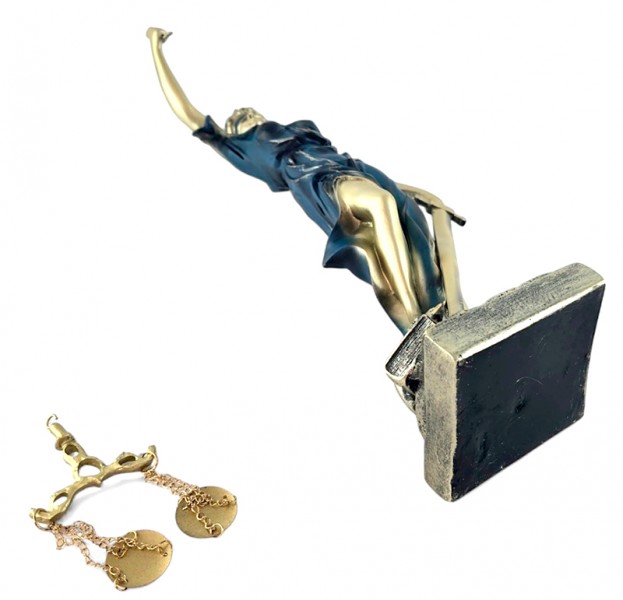 Статуэтка Фемида - символизирует нейтральность и беспристрастность в рассуждении. В одной руке Фемида держит меч, что отражает силу и решительность, а в другой - весы, что является символом власти правосудия.