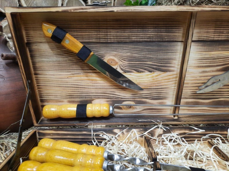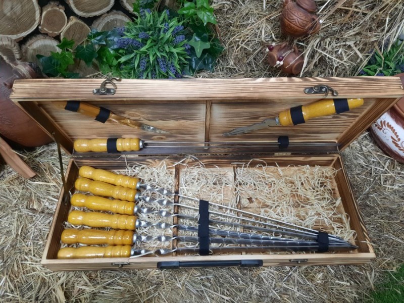 Комментарии к Набор из 6 шампуров для мяса (630х10х3 мм) + комплект аксессуаров в деревянном кейсе