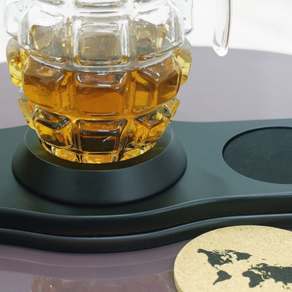 • Комплектация: подставка-держатель, графин, 2 пробковые подставки, 2 стакана, лейка из нержавеющей стали