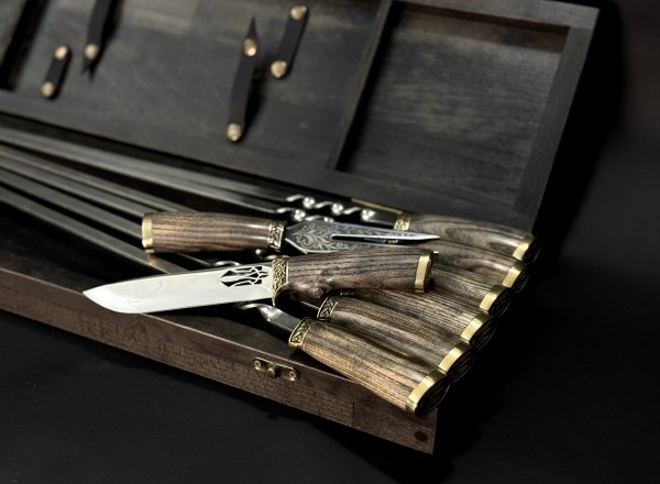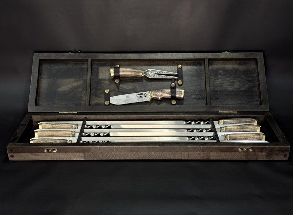 Комментарии к Шампура Тризуб с вилкой и ножом в деревянном кейсе