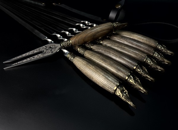 2. Вилка для снятия мяса: рукоять – дерево ясень; материал литья – бронза; лезвие нержавеющая сталь