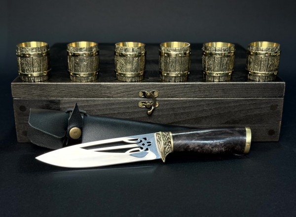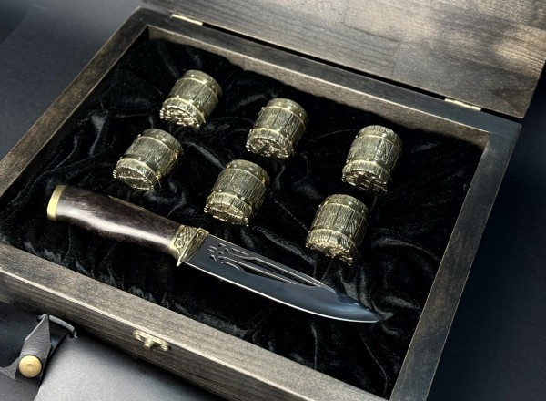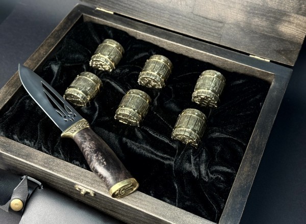 Характеристика набор рюмок бочка с ножом в кейсе из натурального дерева: