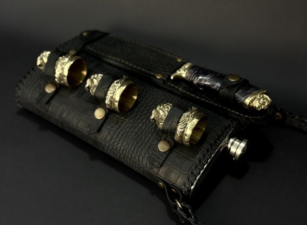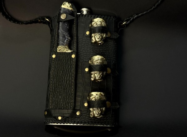 3. Фляга: нержавеющая сталь - обшитая натуральной кожей (рептилия), объем фляги 1800 мл
