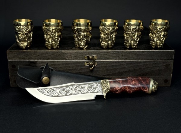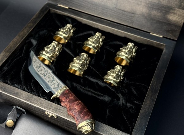 Набор Казацька Рада 6 рюмок с ножом в кейсе из натурального дерева бук