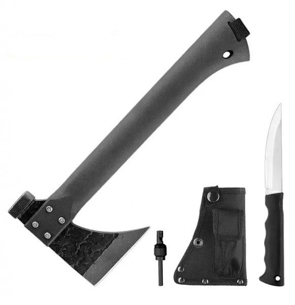 Характеристика тактическая Топор для выживания, молоток, нож, аварийный свисток и магневый стержень: