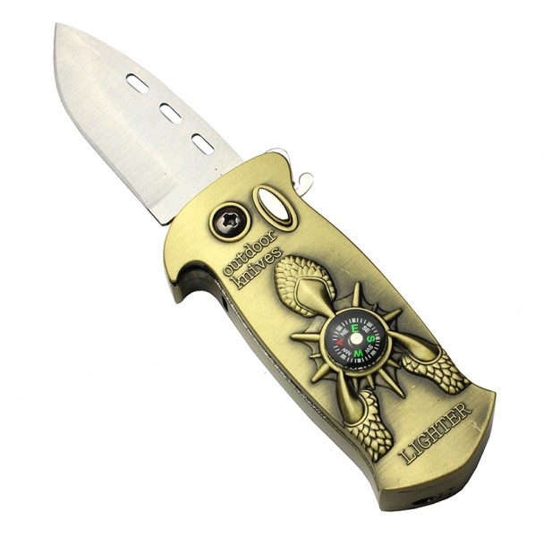 Зажигалка Газовая Раскладной Нож с Компасом