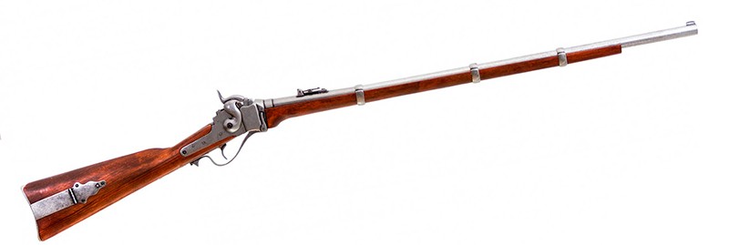 Винтовка Sharps, созданная по проекту Кристиана Шарпса в 1848 году, имела затворную зарядку, которая, кроме возможности использования в качестве стандартного гремучего капсюля, имела довольно необычный механизм взведения. Она содержала колонку гремучих капсул, один из которых накладывался на дымоход каждый раз, когда спусковой крючок затягивался, а курок падал, что облегчало стрельбу. Sharps была снайперской винтовкой с высокой точностью зарядки по сравнению с другими винтовками того времени, главным образом благодаря высокой частоте выстрела благодаря механизму обратной зарядки и высокому качеству изготовления.