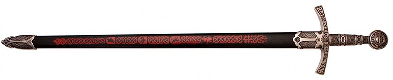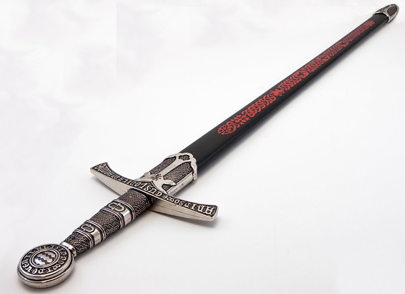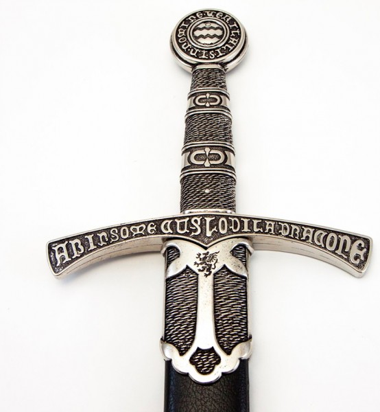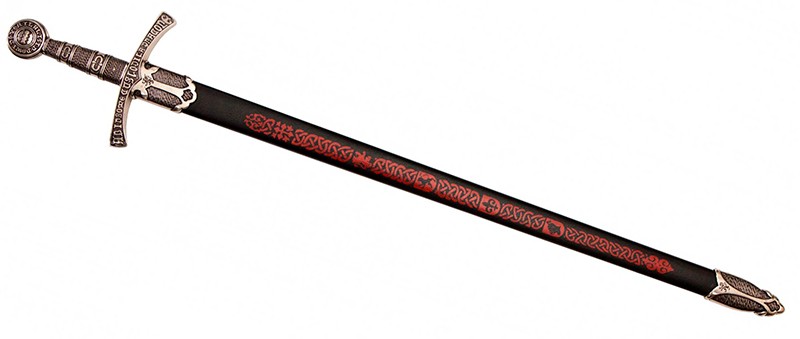 На крестовине и навершие меча есть надпись вульгарной латынью, что означает: «Сохраняется бодрствующий, который спит, во имя правды».Меч, как правило, был излюбленным оружием средневековых рыцарей для их боев. Владельцы любили персонализировать его – некоторые даже получали имена – и меч считался одновременно оружием и символом, поскольку клинок и рукоять имеют крестообразную форму.