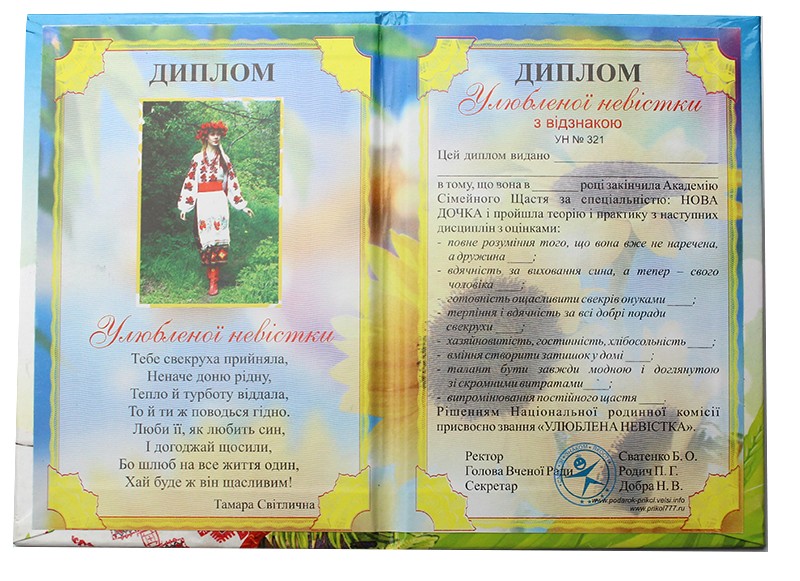 Комментарии к Шутливый Диплом любимой невестки