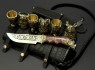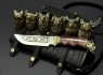 2. Нож ручной работы: рукоять – дерево кленовый кап; материал литья – бронза; лезвие нержавеющая сталь марки 40х13; размер клинка-150*38*2.4. Ножни – натуральная кожа.