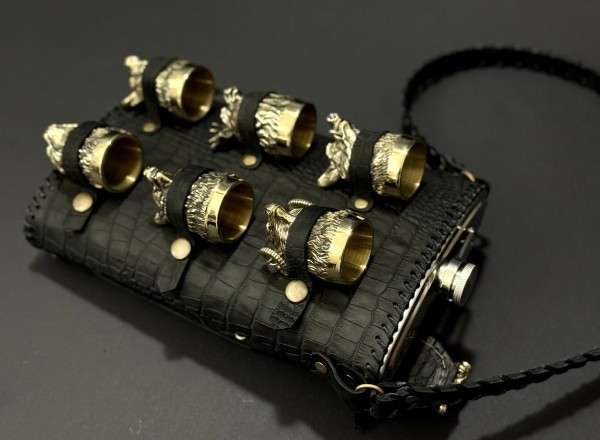 3. Фляга: нержавеющая сталь - обшитая натуральной кожей (рептилия), объем фляги 1800 мл