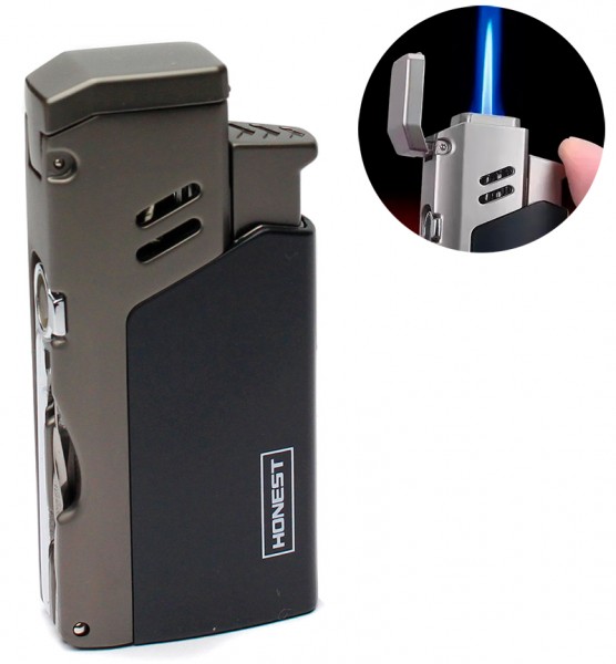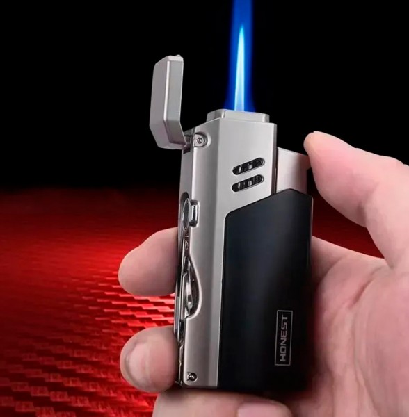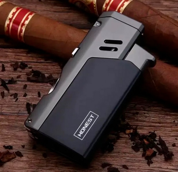 Функциональная газовая зажигалка HONEST — удобный аксессуар для любителей сигар. Модель сочетает современный дизайн, надежный металлический корпус и полезные инструменты для подготовки сигары.