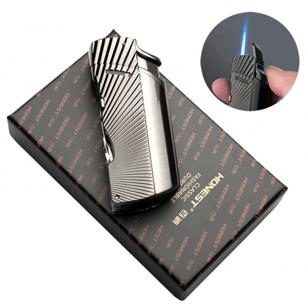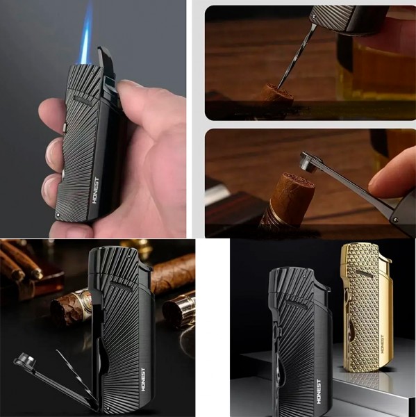Многофункциональная газовая зажигалка HONEST — стильный и практичный аксессуар для любителей сигар. Модель сочетает мощное турбо-пламя, надежный металлический корпус и встроенные инструменты для подготовки сигары.