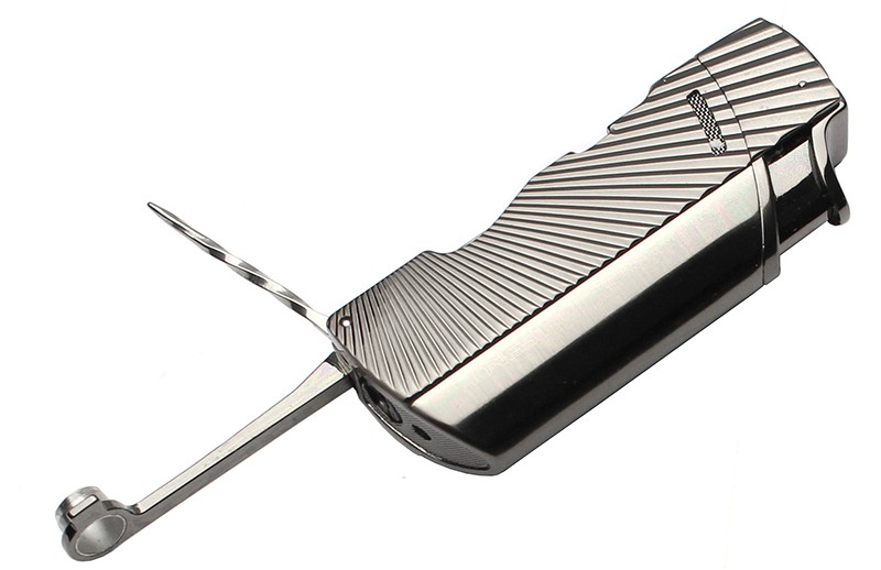 Особенностью модели является наличие встроенного пробойника (7 мм) и ножа для сигар из нержавеющей стали, которые удобно складываются в корпус. Благодаря этому зажигалка становится универсальным аксессуаром для курения сигар.