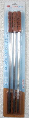 6 шампуров длиной 60 см толщиной 1,5 мм в блистере.