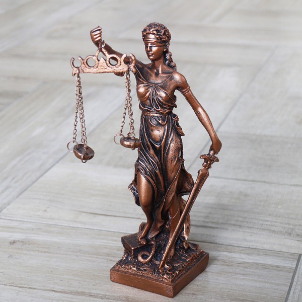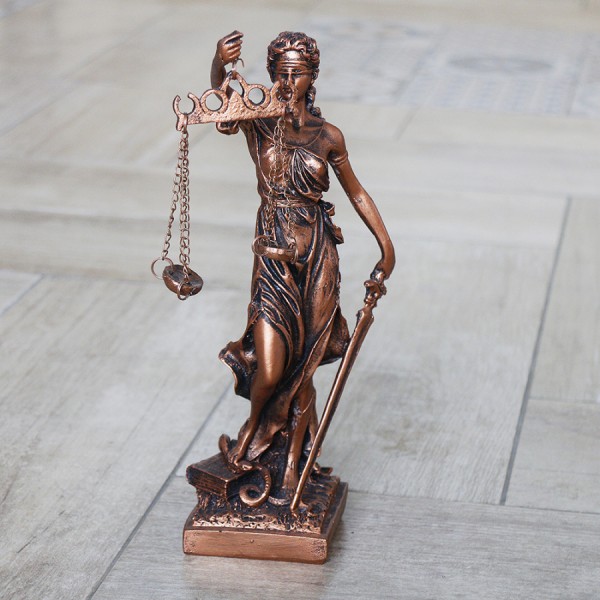 Предлагаем вашему вниманию настольную статуэтку богини правосудия Фемиды. Фигура изготовлена из металлического сплава и выглядит явно дороже своей цены. Послужит отличным подарком для юристов, нотариусов и судей.