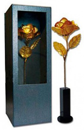 Оригинальный и красивый подарок, истинное произведения искусства, если хотите приподнести своей любимой девушке, жене, маме, сестре или просто коллеге действительно интересный ювелирный подарок, стоит обратить внимание на данный шедевр. Достоинством данной розы есть то, что она покрыта сусальным золотом (как известно одним из самых благородных металов), и символизирует достаток и любовь. Высота 15 см.